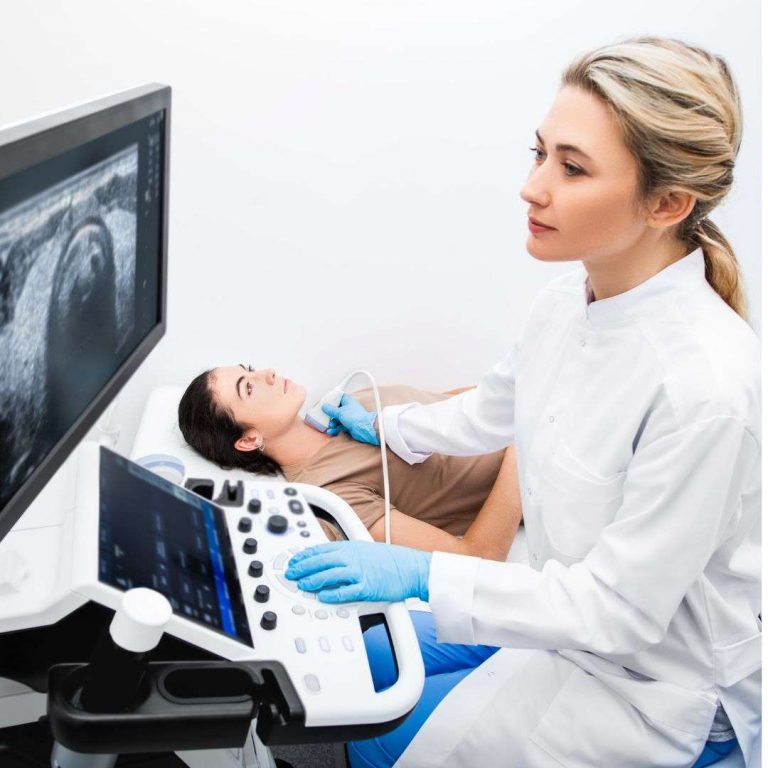 Cuello y tiroides: Es un método de imágenes para mirar la tiroides, una glándula ubicada en el cuello que regula el metabolismo (todos los procesos que controlan el ritmo de actividad de las células y los tejidos).